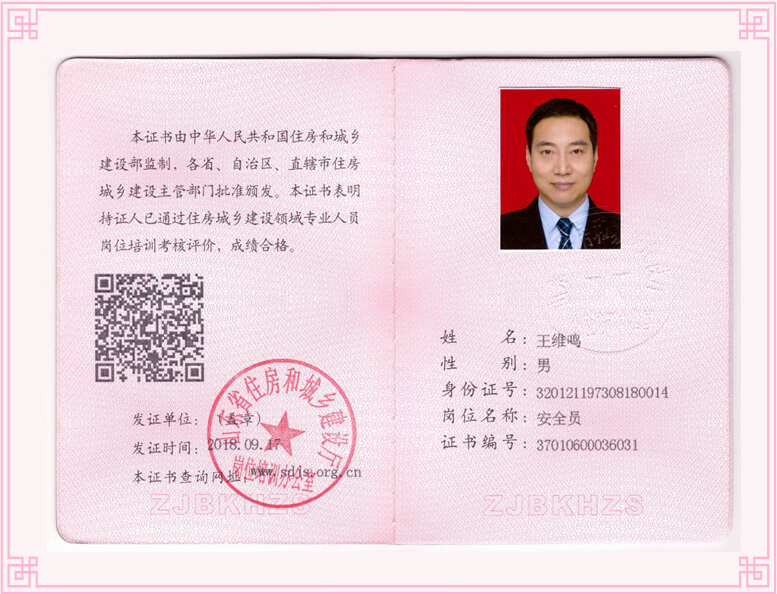 住房和城乡建设行业岗位证书-安全员证书-王维鸣