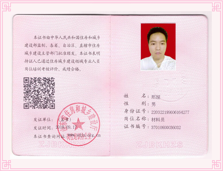 住房和城乡建设行业岗位证书-材料员证书-邢超