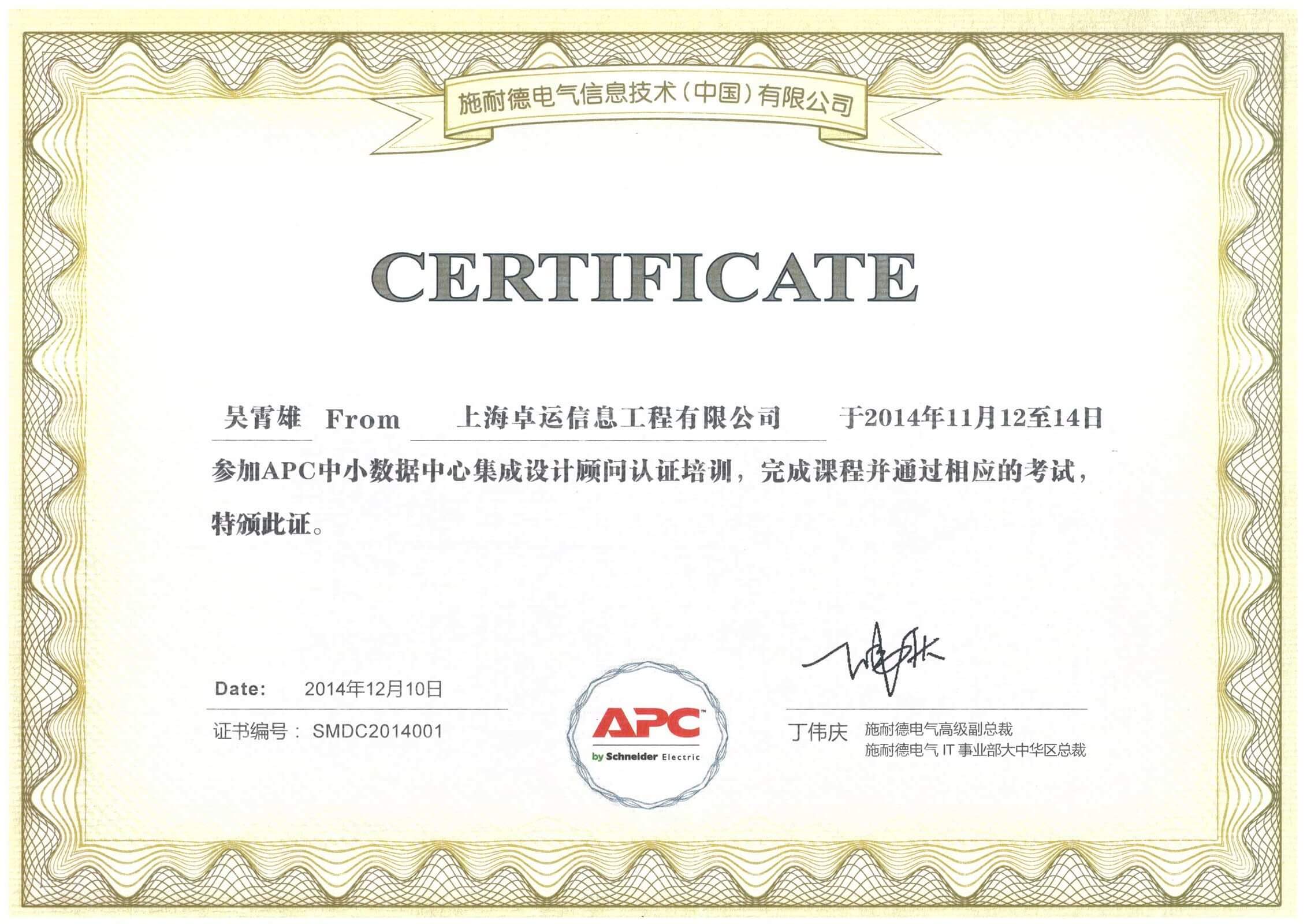 APC中小数据中心集成设计顾问认证证书-吴霄雄
