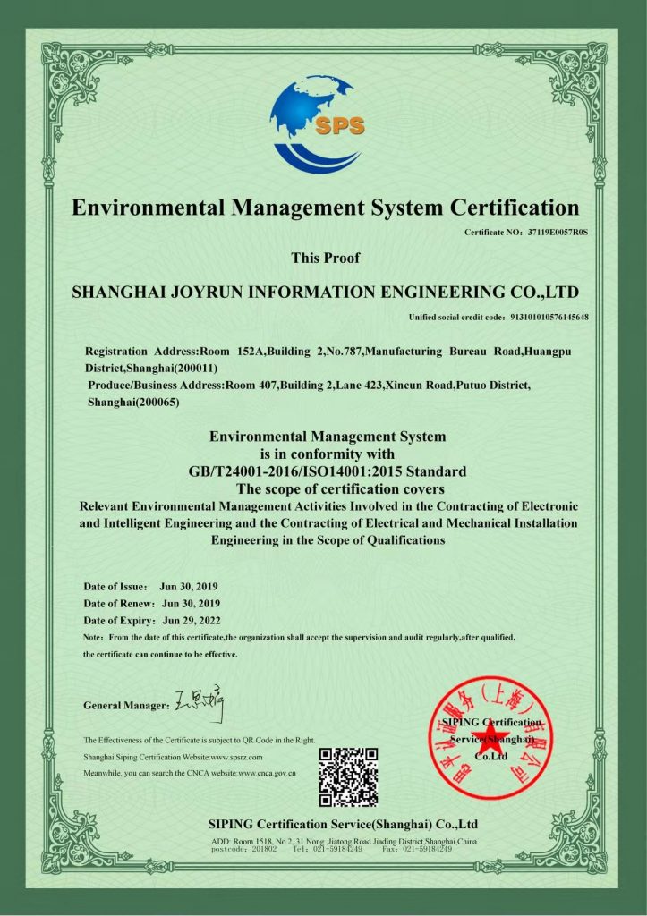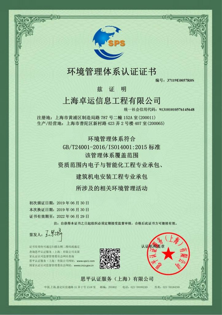 环境管理体系认证证书