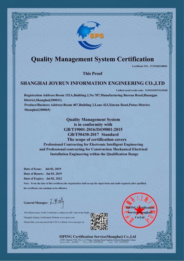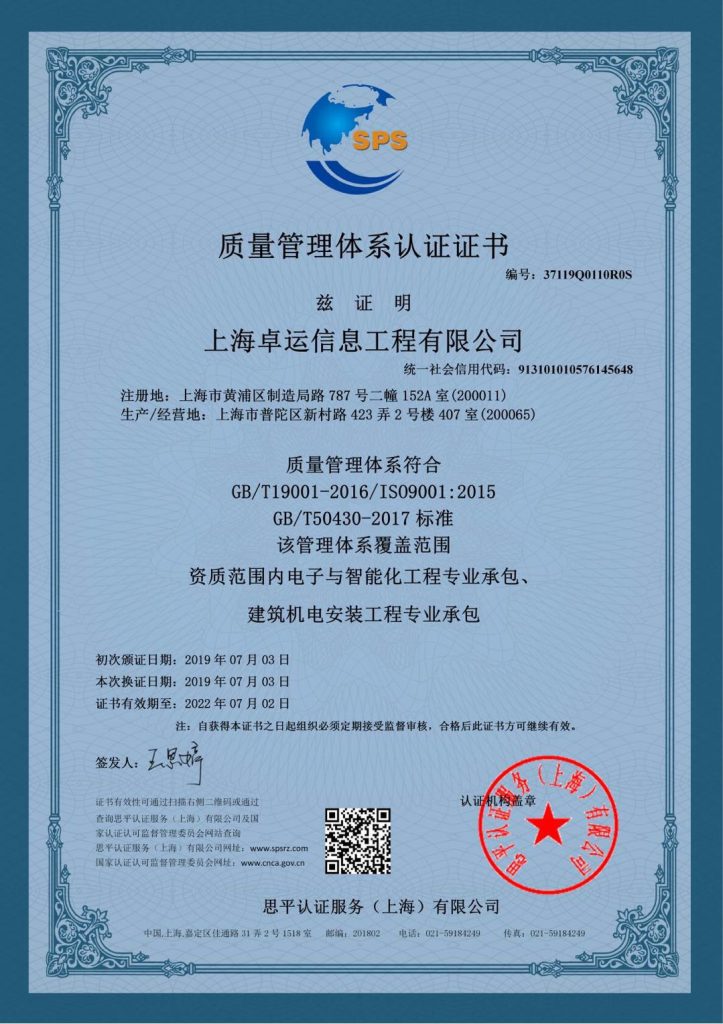 质量管理体系认证证书